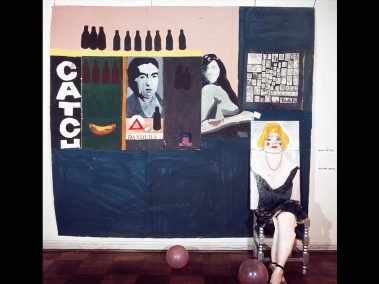 Por su parte, Carlos Peters presenta grandes collages y piezas volumétricas que recogen un itinerario visual que retrata la vida santiaguina de principio de la década de los setenta. El cartón y la madera se transforman en los soportes de una obra que se vale de fotografías encontradas, boletos de lotería, propaganda política y afiches callejeros, materiales con los cuales el artista construye una poética que se nutre de la calle y de los recuerdos familiares. Son trabajos que, desde su quehacer gráfico-bidimensional, desbordan su matriz a partir de un cuerpo frágil, que transita del muro al espacio.